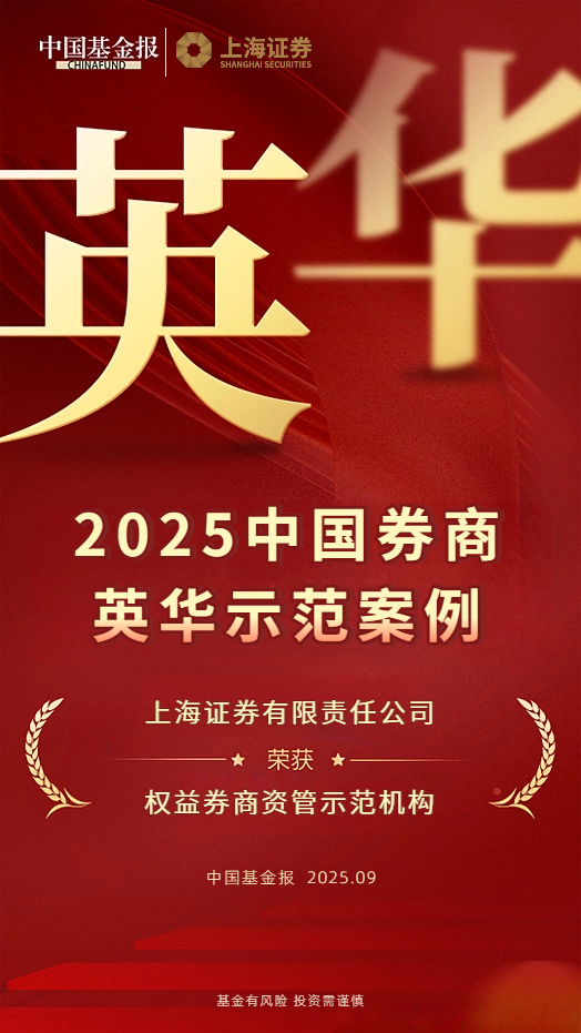 上海证券资产管理业务凭借其资管业务规模、收入排名、业绩表现等综合实力,并综合投资风格、投研体系、公司治理、声誉管理等多维度评估,上海证券以专业业务能力和杰出业绩表现,荣获“2025中国券商英华示范案例-权益券商资管示范机构”奖项。