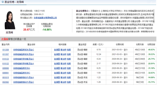 此外,华泰柏瑞品质优选混合A(009990):2020年8月管理至今,规模6.25亿元,任职回报-31.18%;C类份额(009991)规模1.55亿元,回报-32.83%。