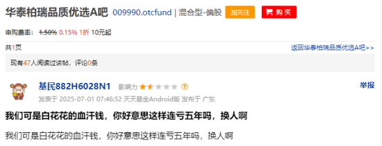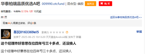有基民质疑道,这个经理咋好意思在位四年亏三十多点,还没换人。